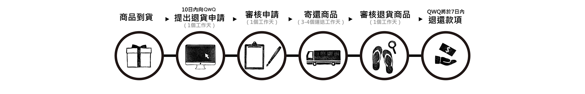 ●請於收到商品當天起算10日內告知QWQ,客服人員會立即處理並與您聯繫。