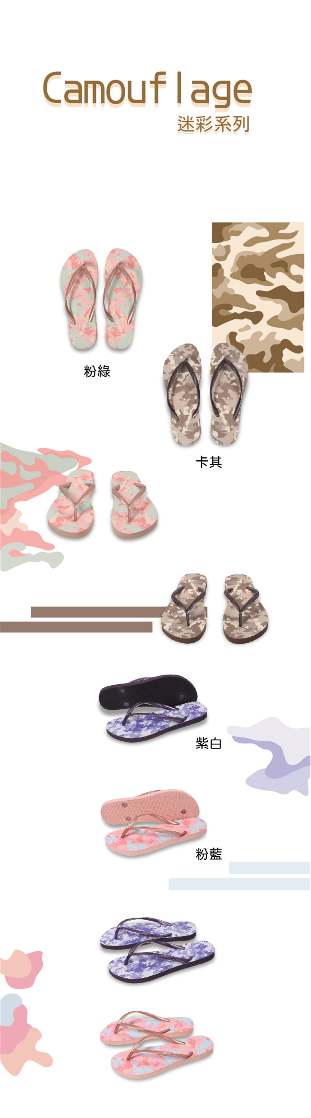 迷彩系列 紫白迷彩 女款細帶人字夾腳拖鞋 紫色