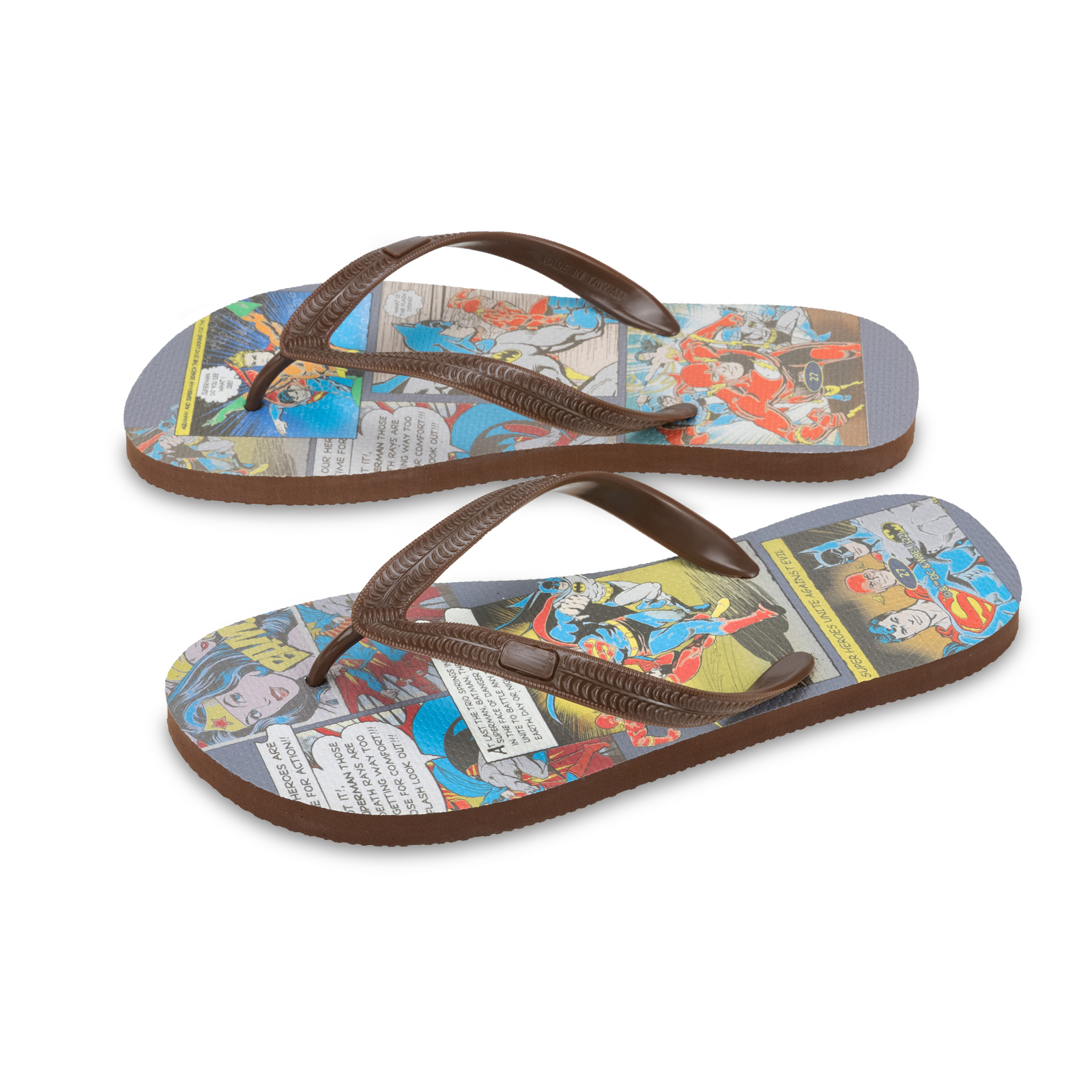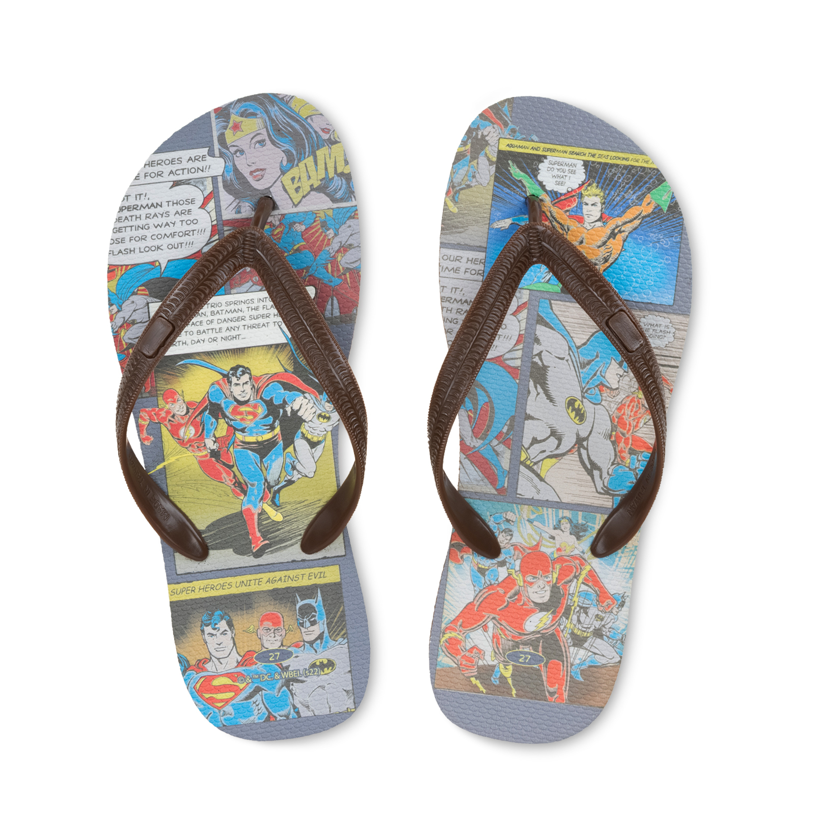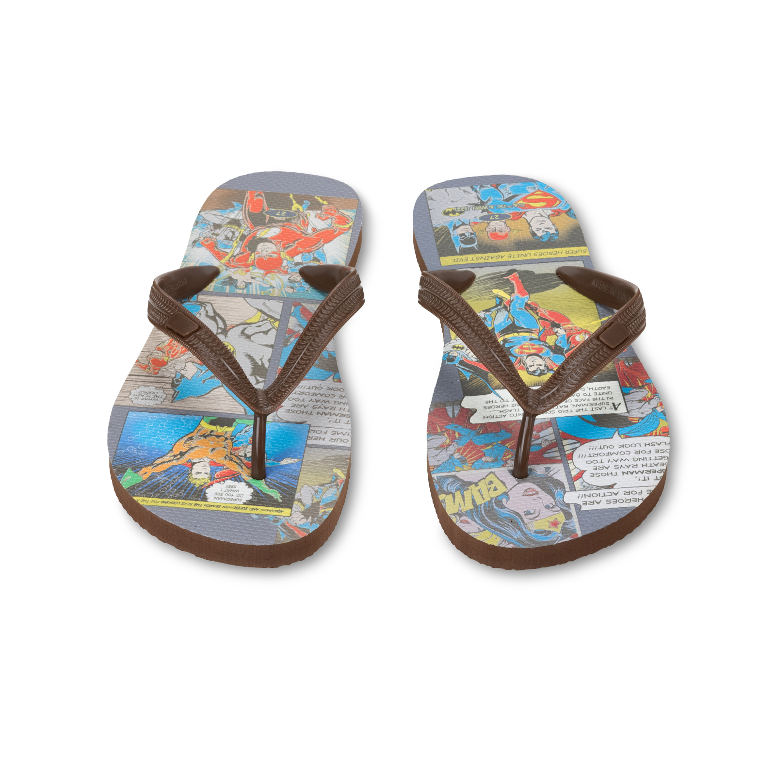 漫畫款 DC正義聯盟 男款粗帶人字夾腳拖鞋 可可棕