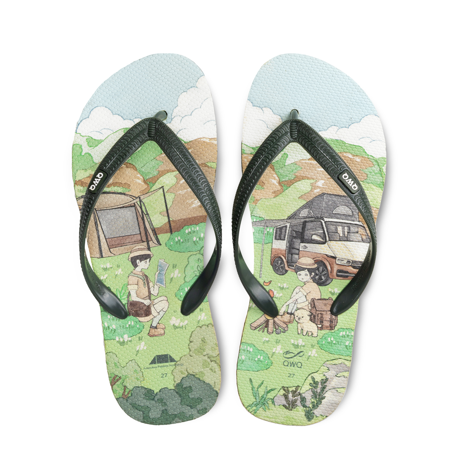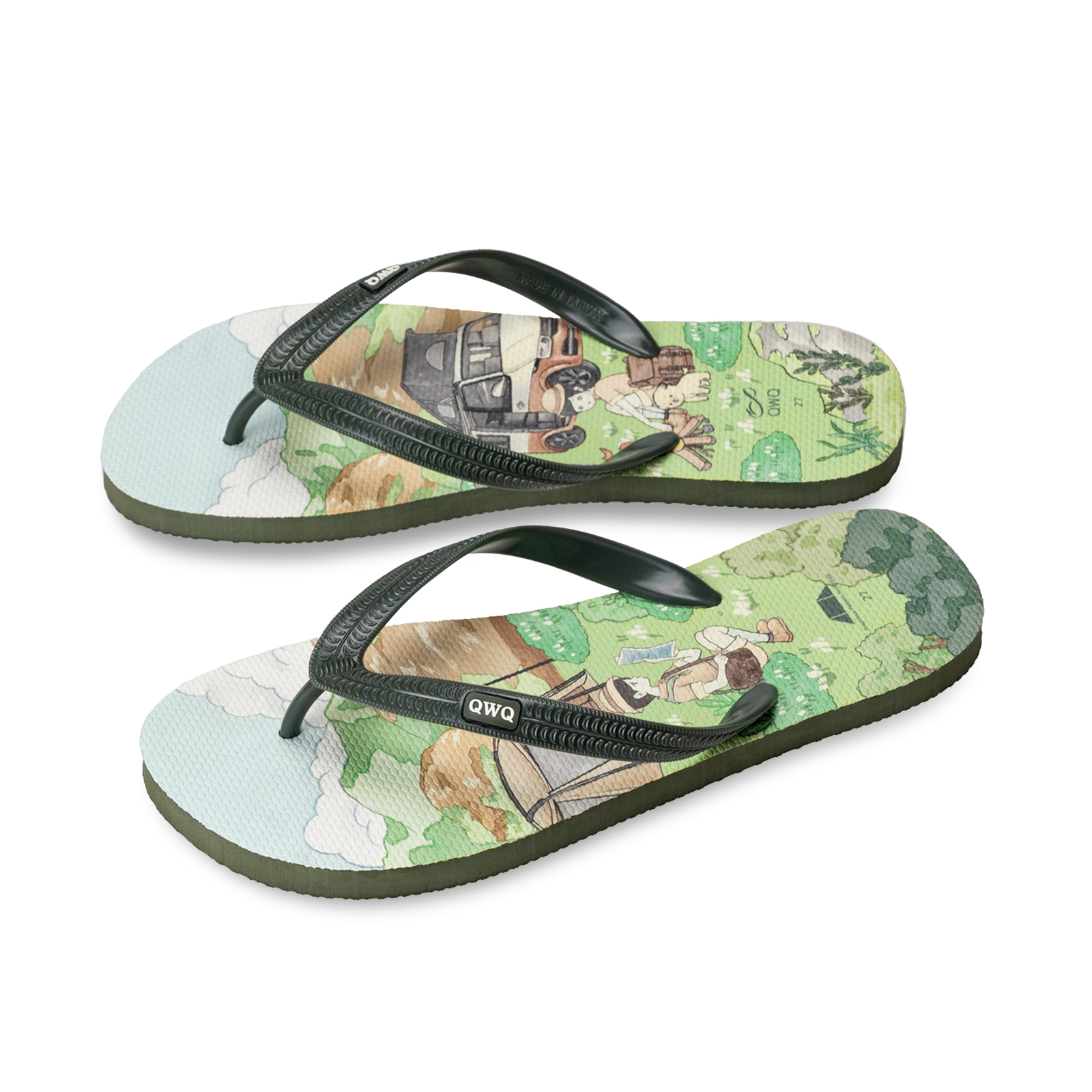 吉文考古 露營款 綠色 男款粗帶人字夾腳拖鞋