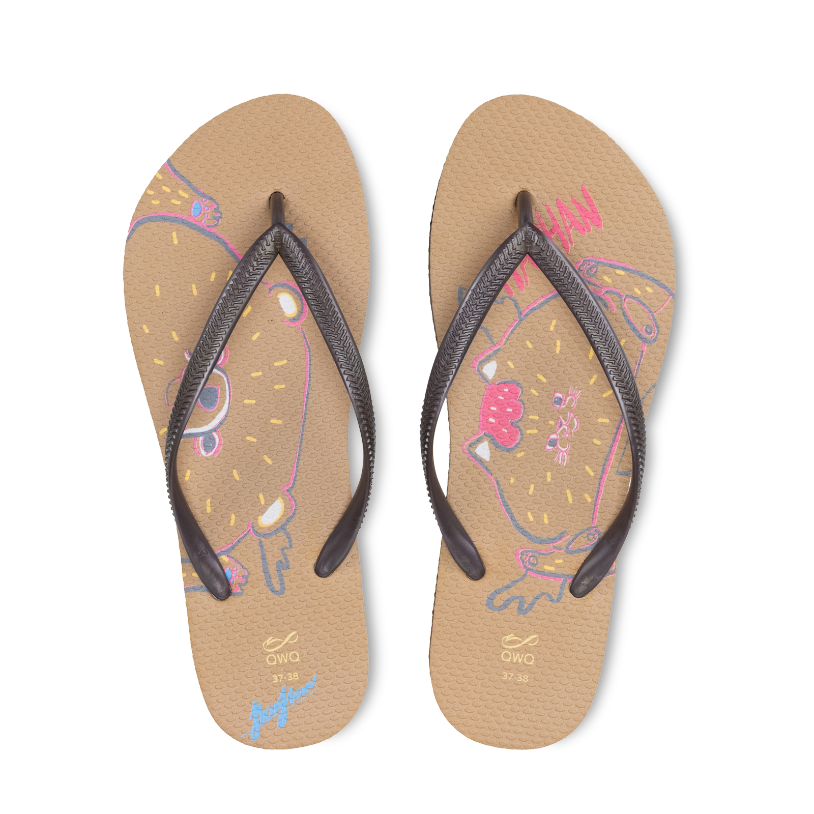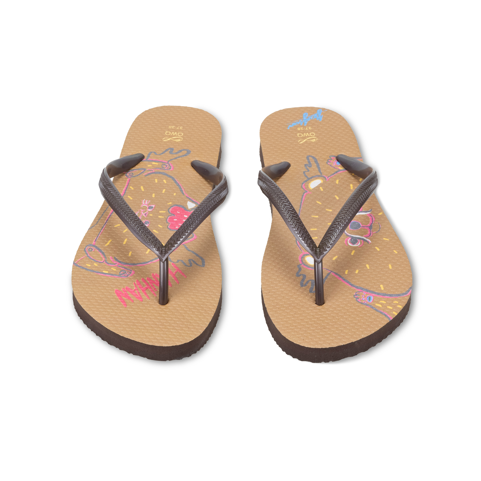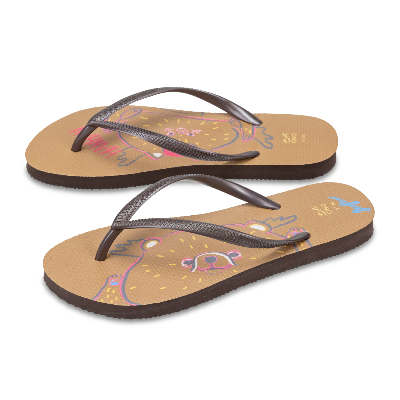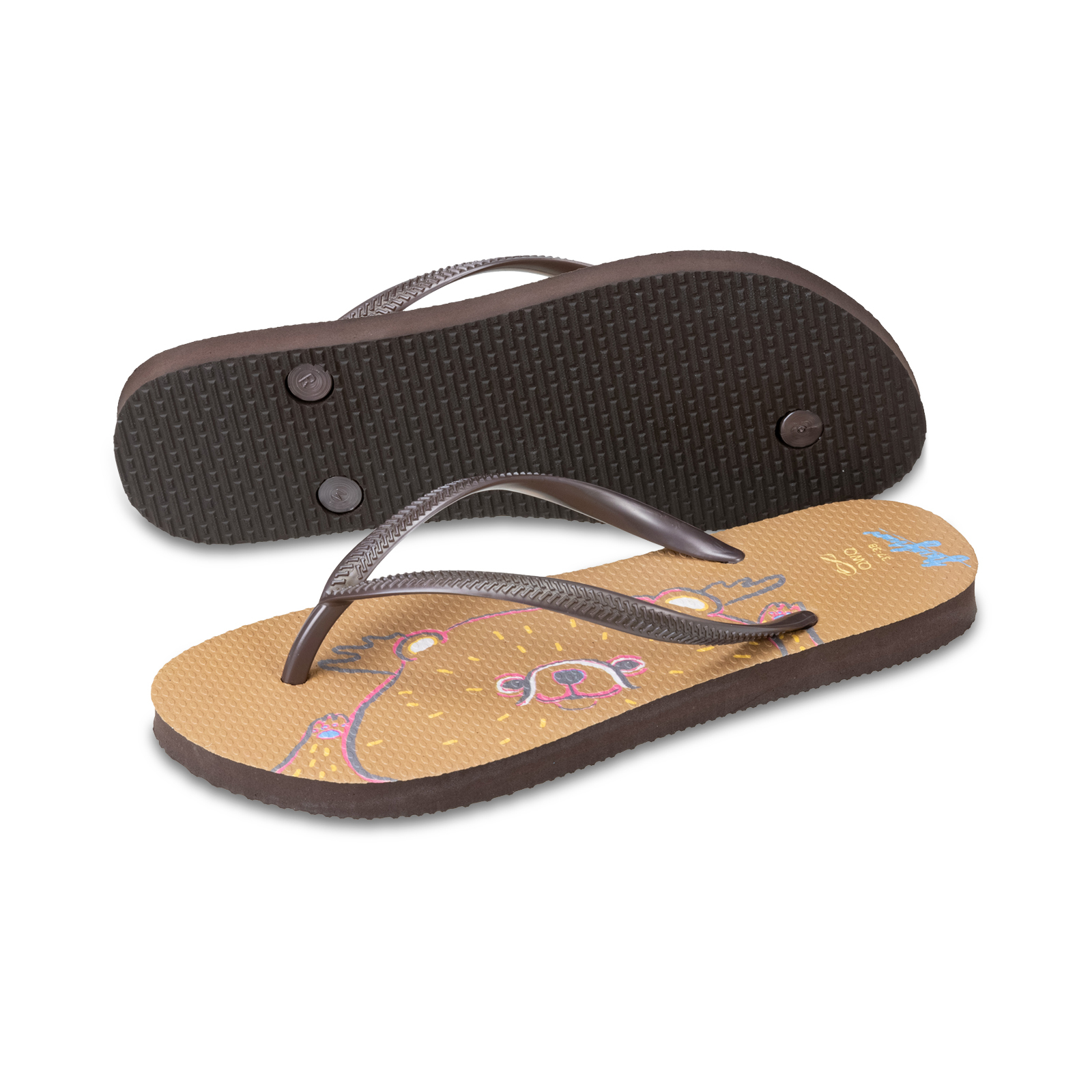 憨憨動物園 熊熊好碰友 女款細帶人字夾腳拖鞋 焦糖棕