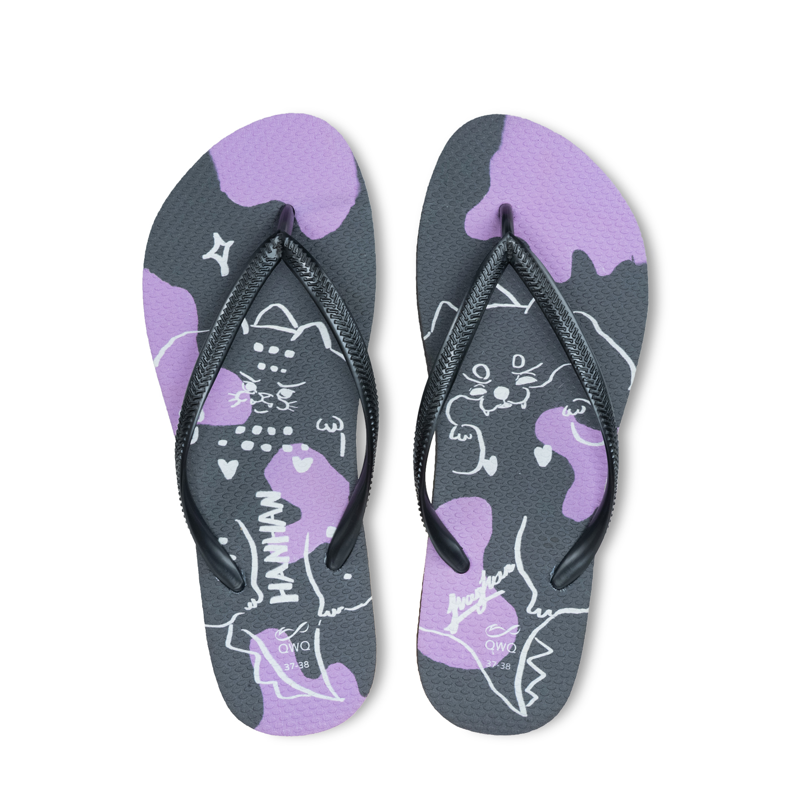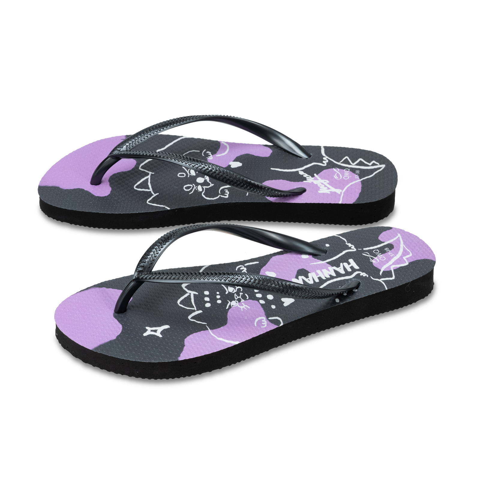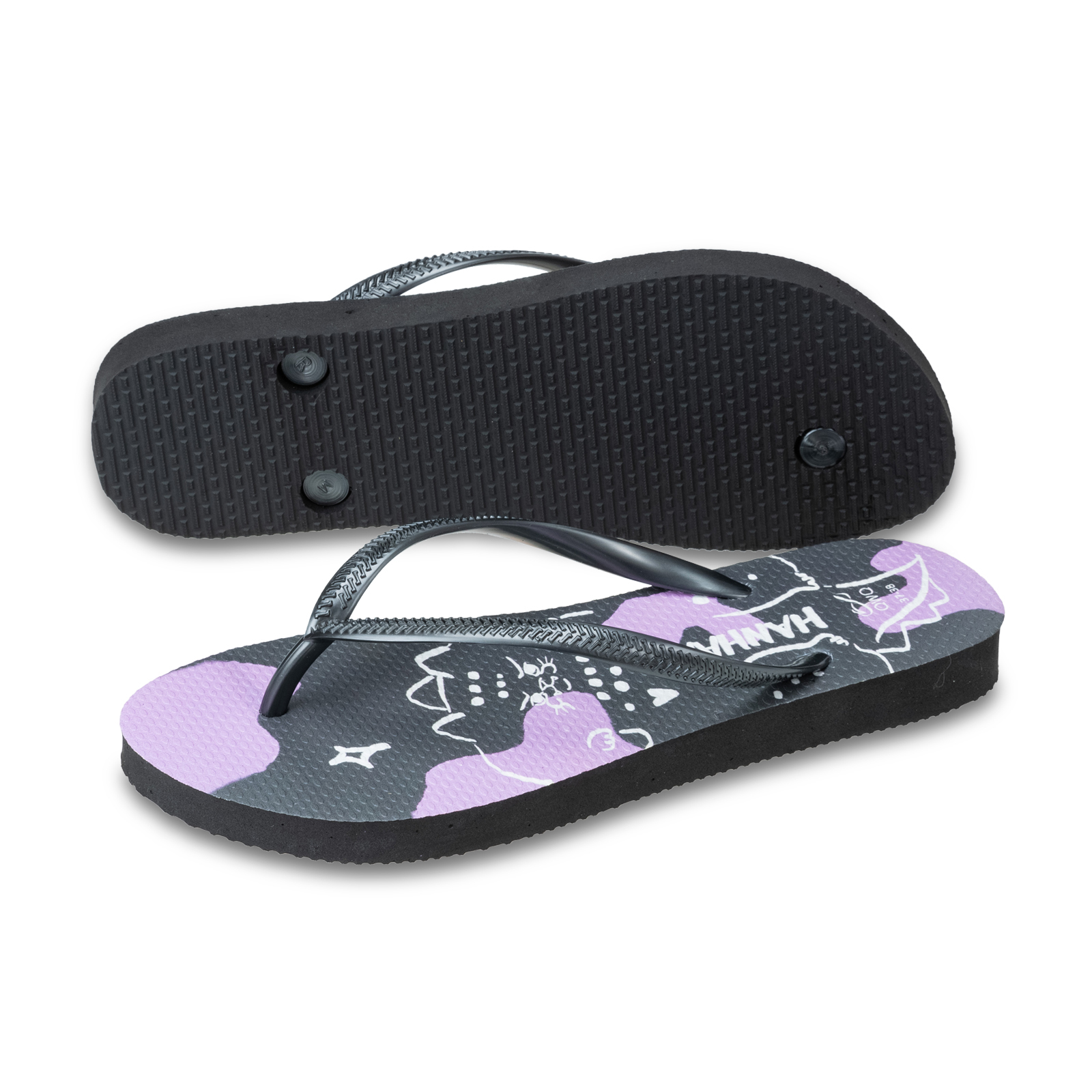 憨憨動物園 肥肥大壞壞 女款細帶人字夾腳拖鞋 曜石黑