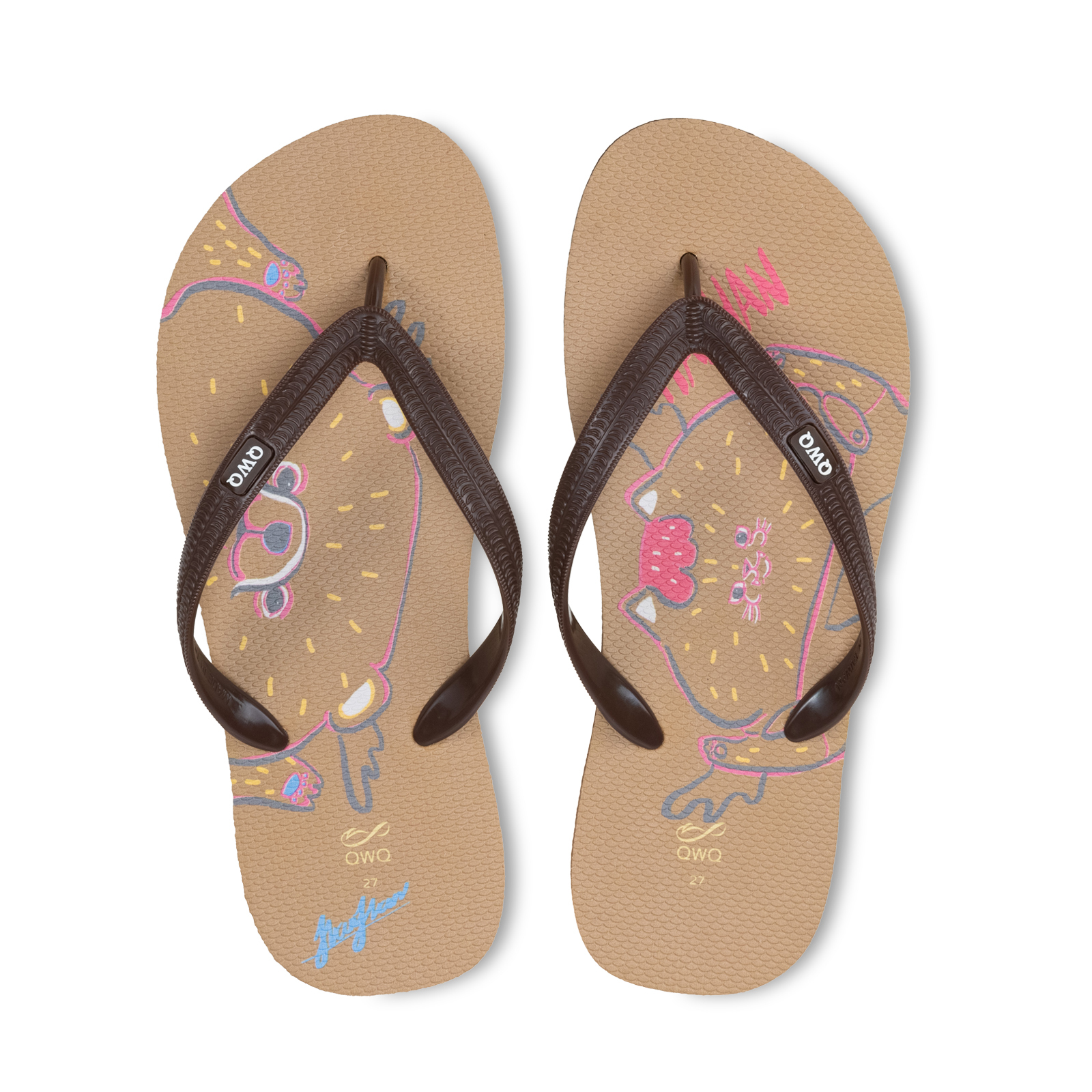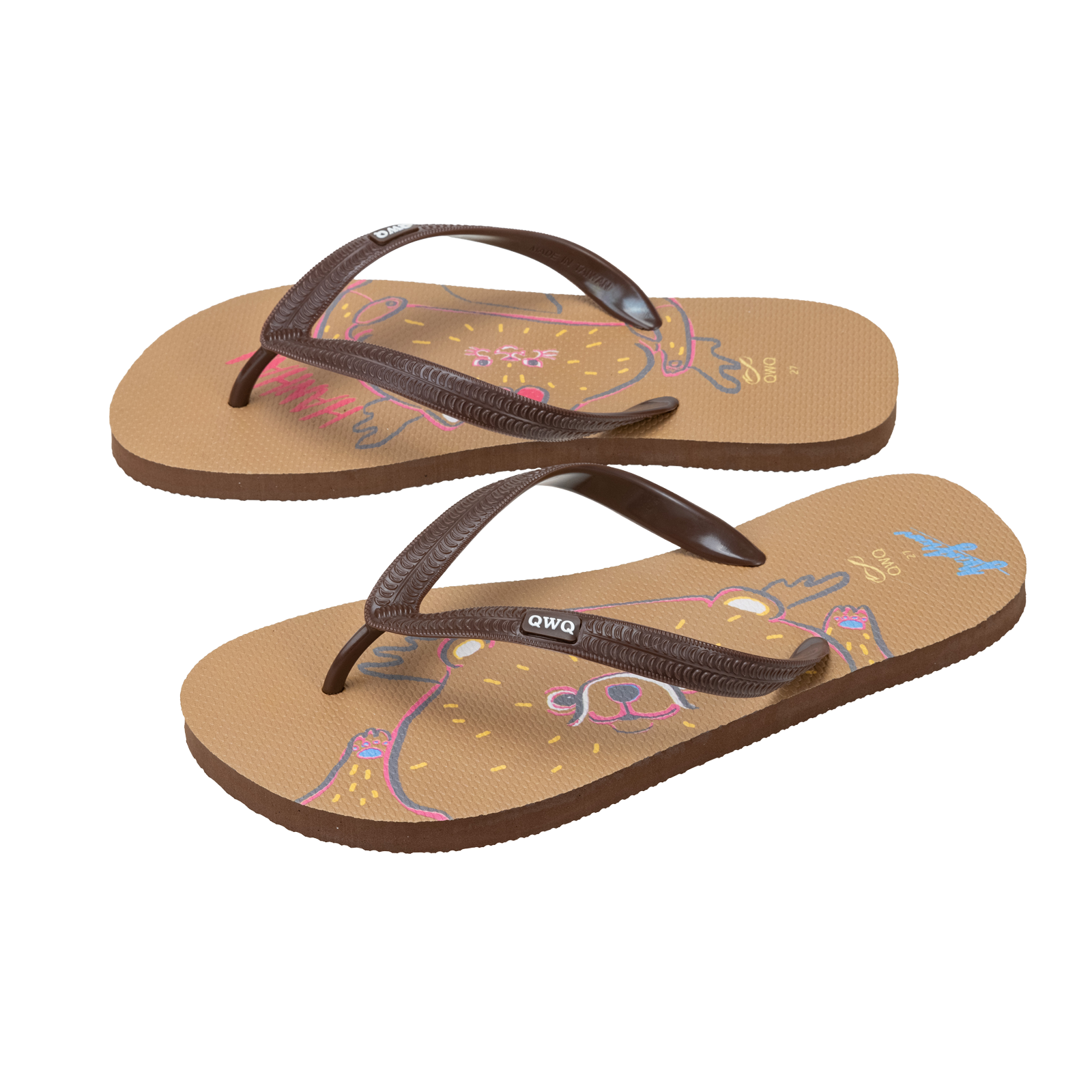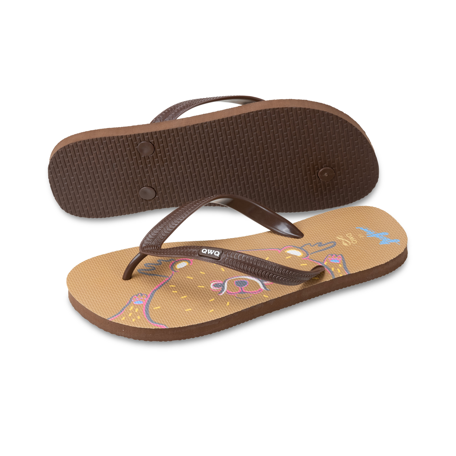 憨憨動物園 熊熊好碰友 男款粗帶人字夾腳拖鞋 焦糖棕