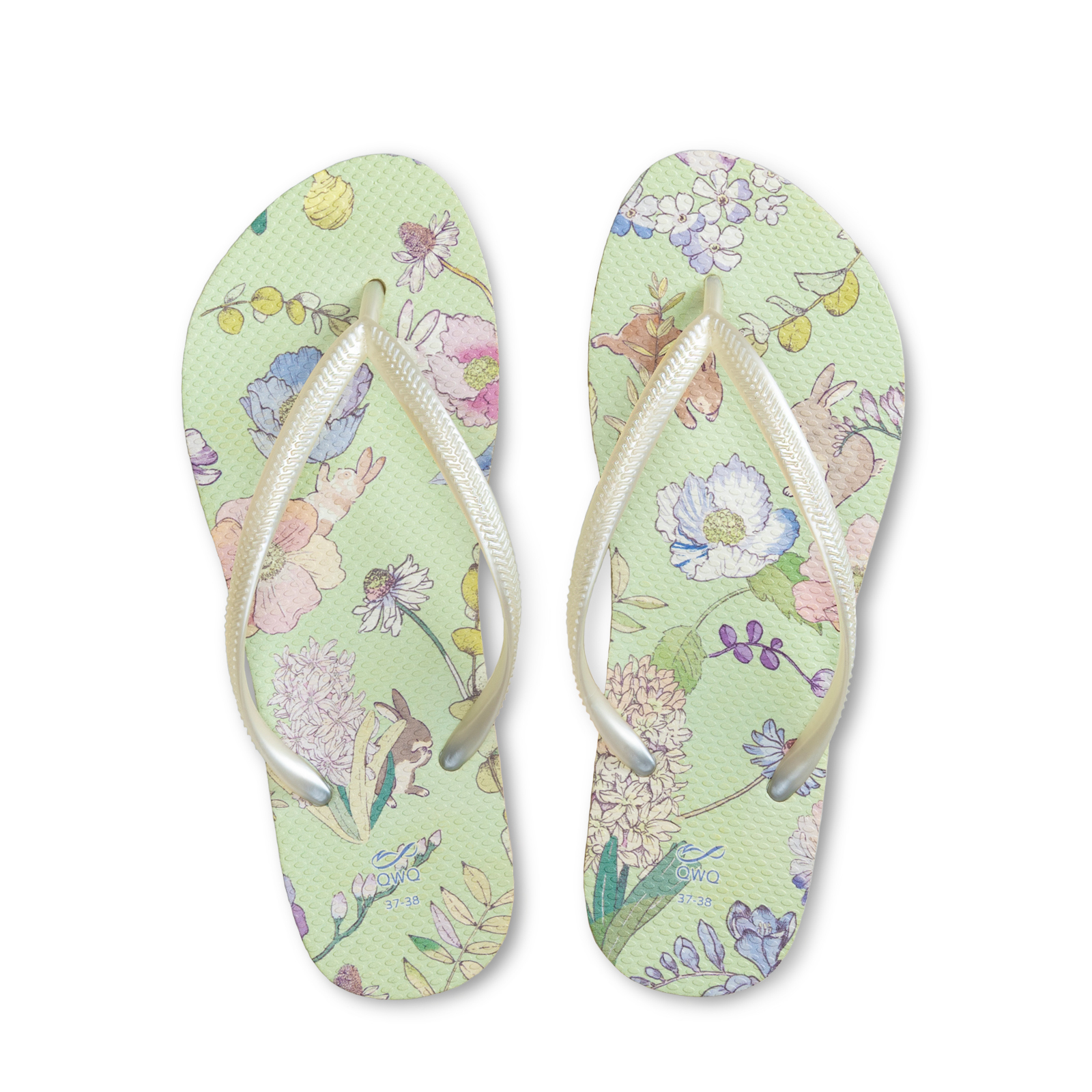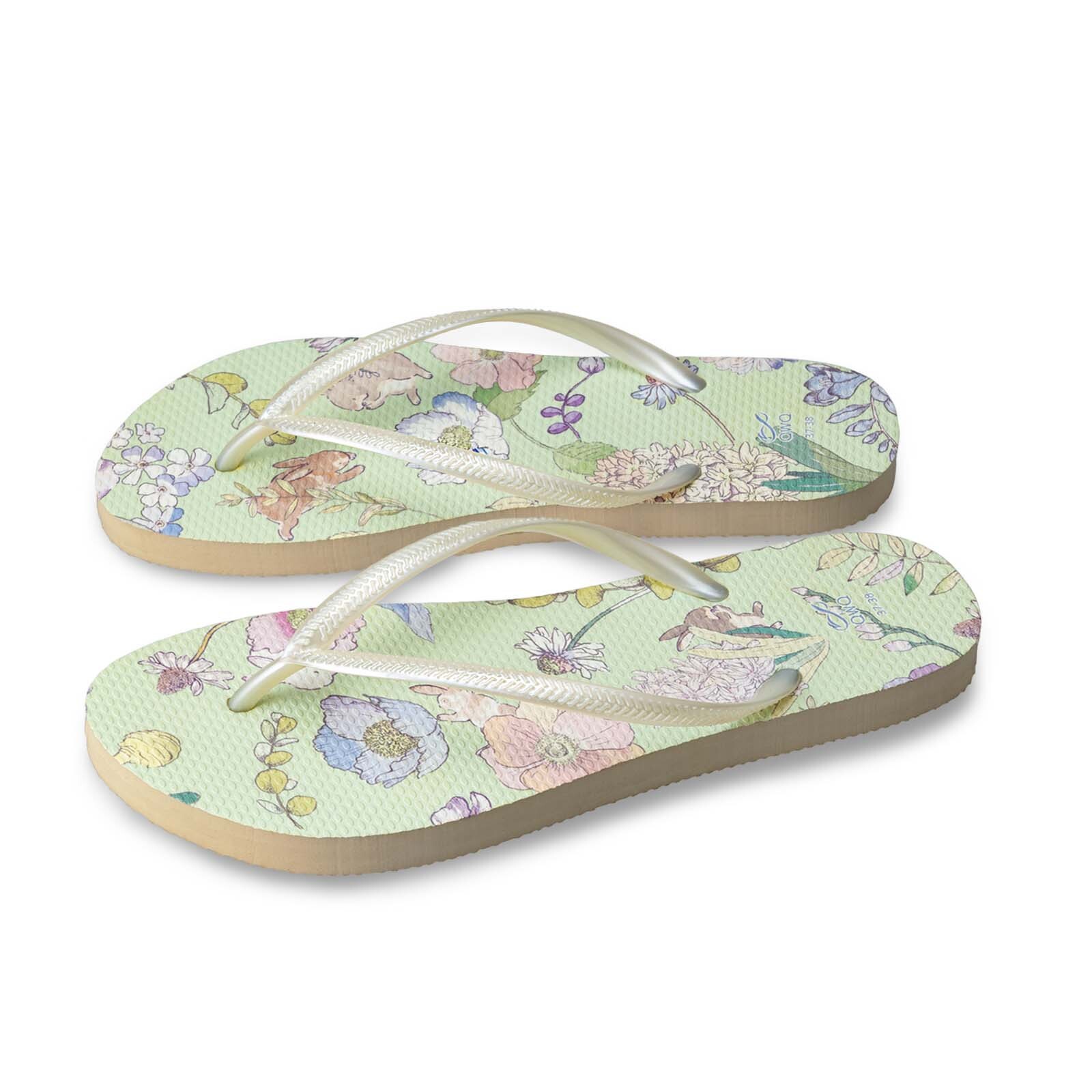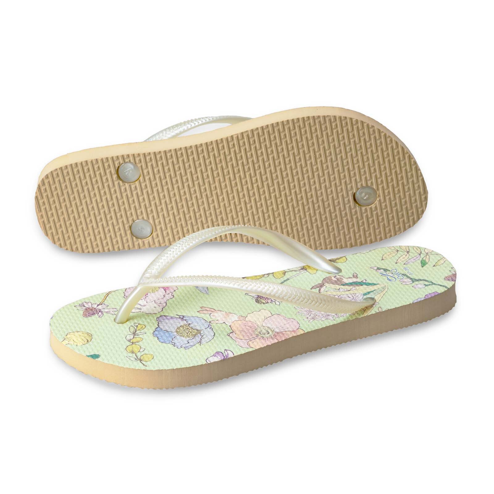 露台上的波麗 夏綠蒂 女款細帶人字夾腳拖鞋 沙金底白帶