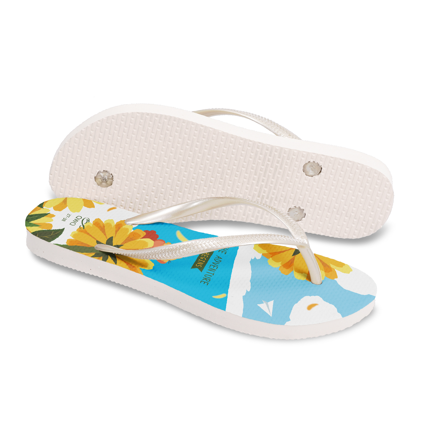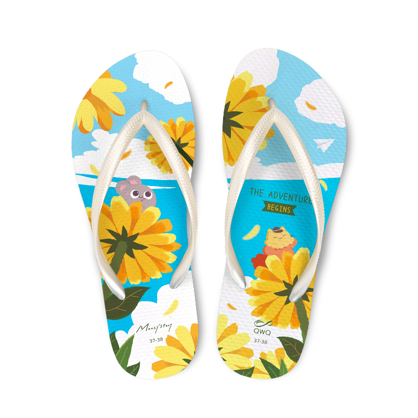 小鼠手札 雛菊 女款細帶人字夾腳拖鞋 白色