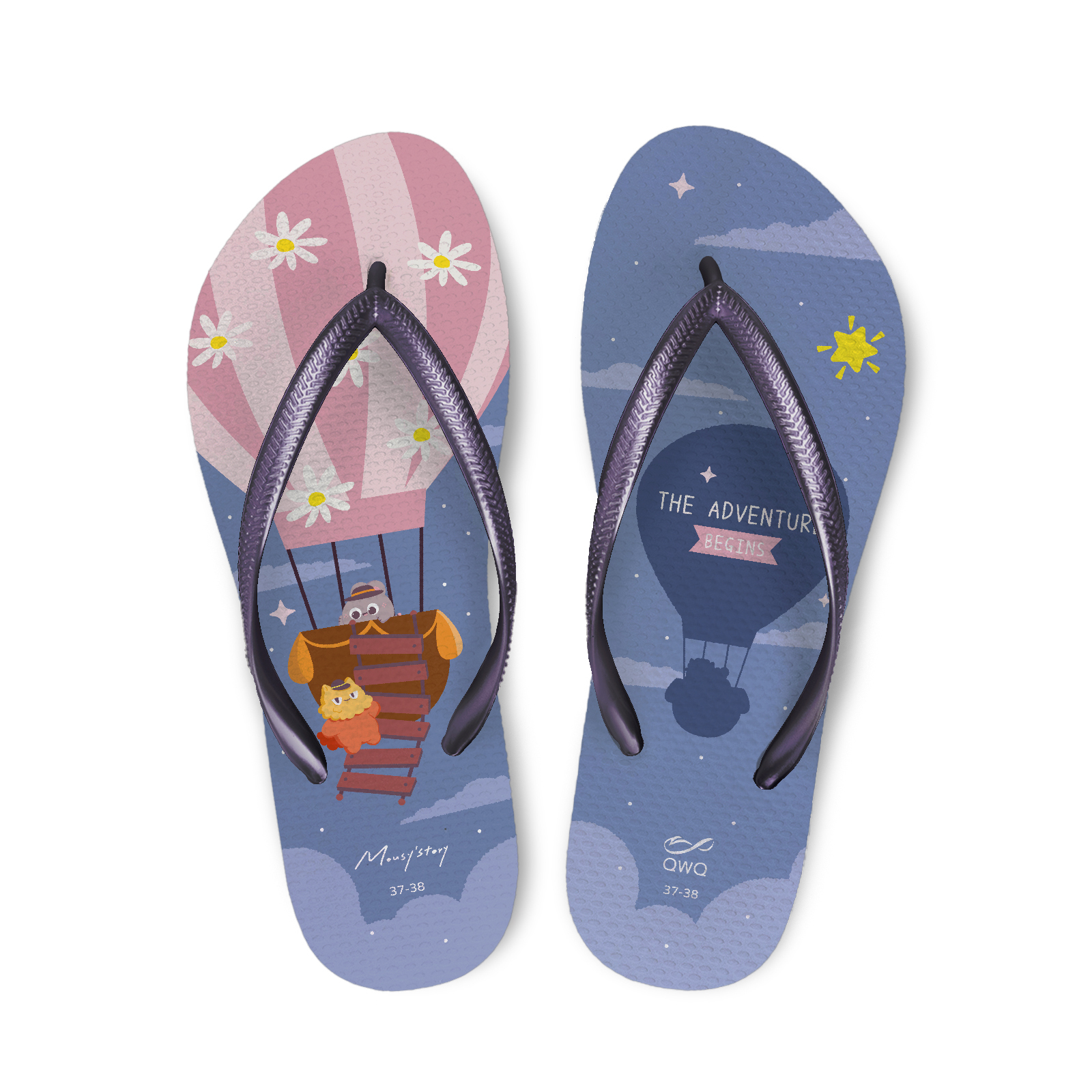 小鼠手札 熱氣球 女款細帶人字夾腳拖鞋 星空紫