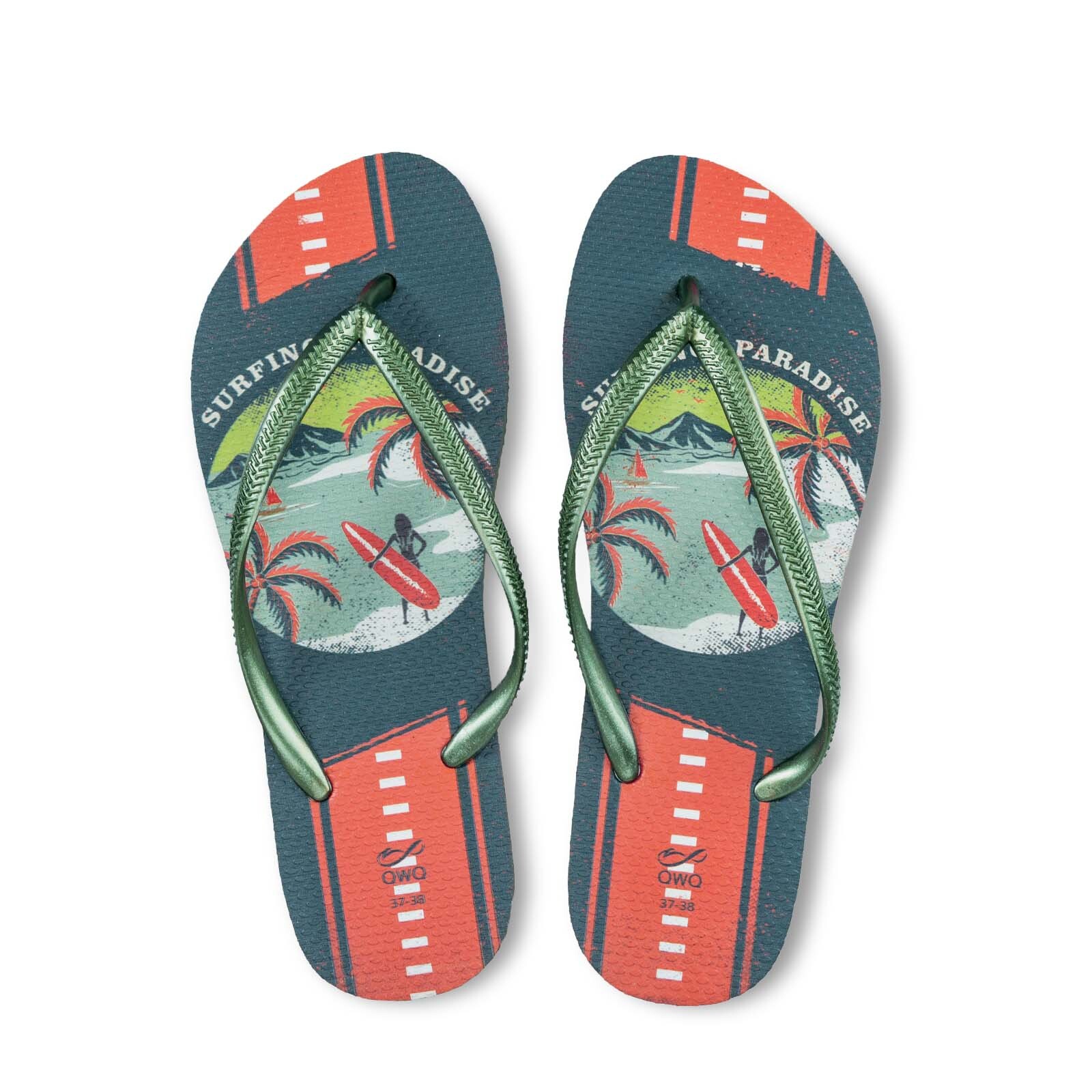 HEAVEN 夜幕綠 插圖女款夾腳拖鞋 LE原創