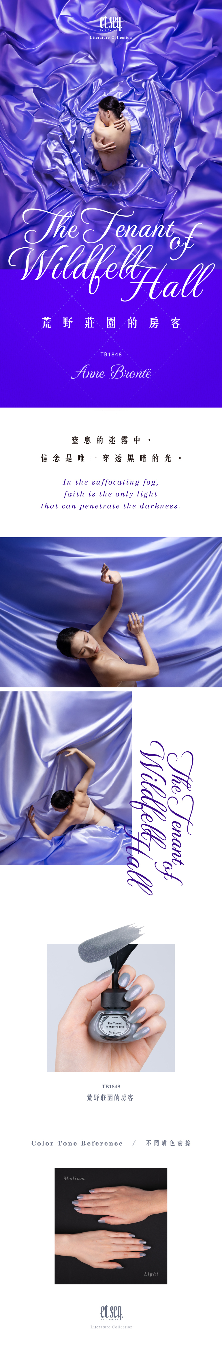 曙光朝暮藍,如同《荒野莊園的房客》裡深藏的隱秘堅韌,柔和中透著勇氣與抗爭,恰似女主角為自由與尊嚴奮鬥的內心世界。——《荒野莊園的房客》不僅是對家庭暴力和婚姻壓迫的控訴,也是探討女性自我認同和自我實現的作品。海倫並不是一位被動的受害者,她選擇主動改變自己的命運。安妮·勃朗特用她簡潔有力的敘事,深刻描繪了海倫內心的掙扎和堅持,展現了女性在面對壓迫時的力量。