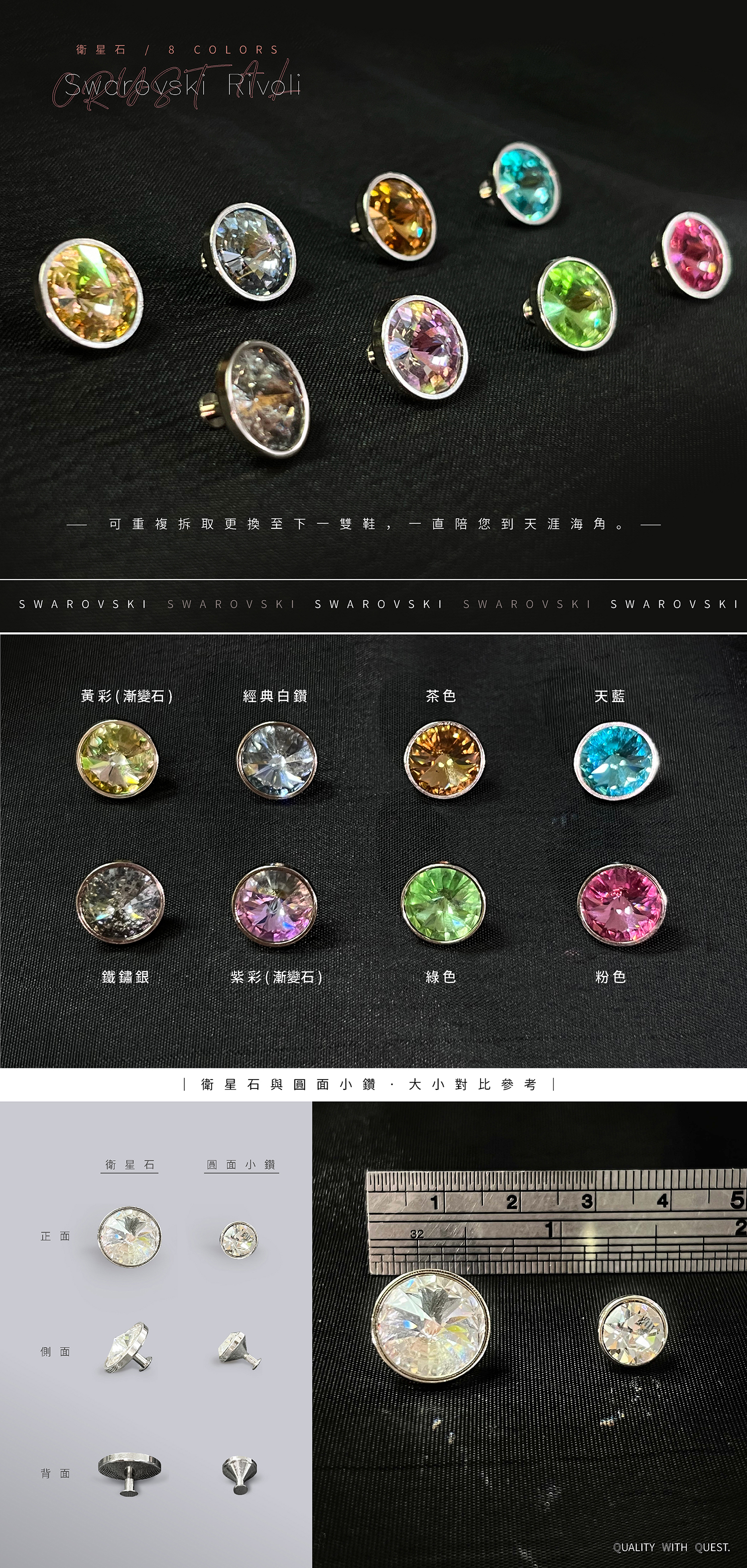 ‧ 水鑽背後倒扣爪行設計牢固不掉