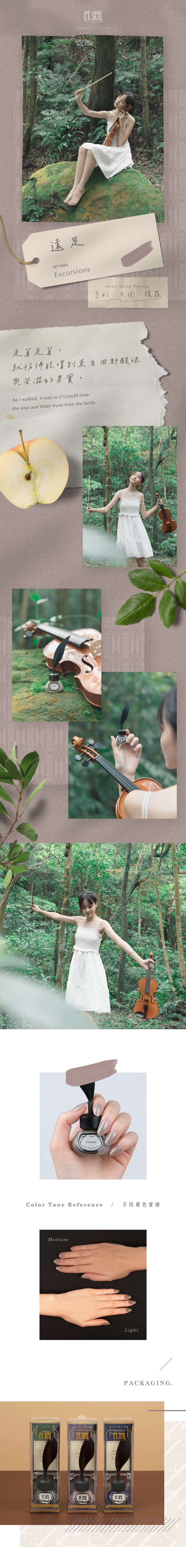 透過收穫的概念選用了秋褐色,表達了散文內隱隱透露的時節和梭羅對自然大地的感動,濃郁的土地氣息,更彰顯著大自然的力量和恩賜,溫暖而包容。